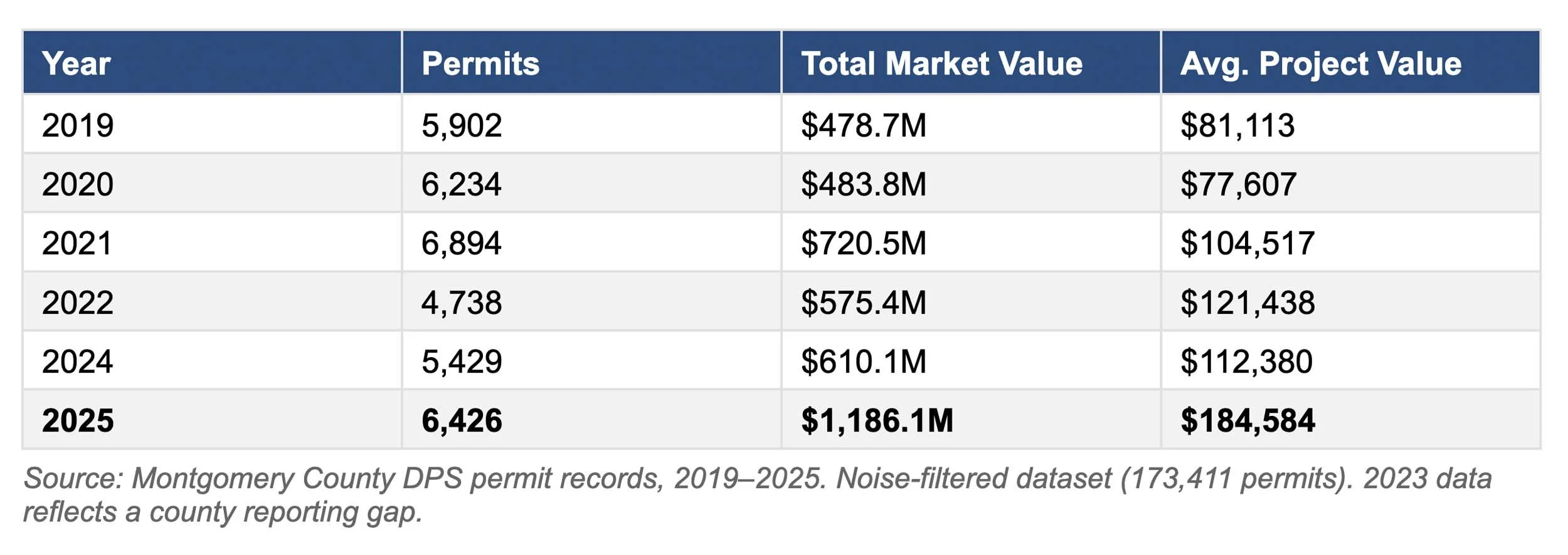 Data sourced from Montgomery County, MD Department of Permitting Services
